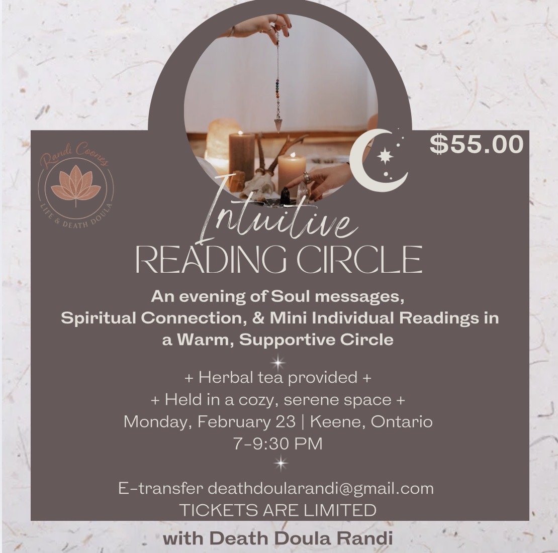 Randi is taking on new clients, as always, for her death doula work, mediumship readings, energy work, and spiritual holistic healing. Email us to set up an appointment with her or click HERE!